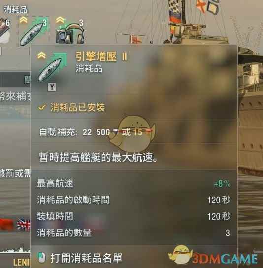自带了加速 而作为一艘金币船,她也有着自己和其他英国驱逐舰不同的地方——拥有引擎加力(独立槽位),只有一组鱼雷。这样的她在英国驱逐舰千篇一律的大众脸中显得非常独特。