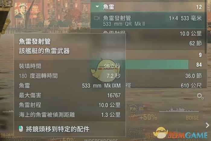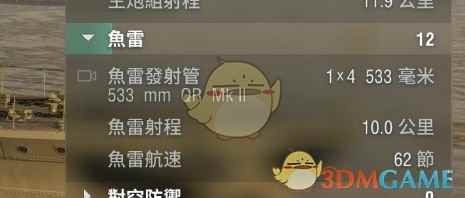 四根可以单独发射的鱼雷,只有一组,装填时间很平庸,这雷要是有再装填还不错,问题是没有=_=聊胜于无,远距离佛系扔雷或者近距离搏命,自选其一。