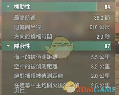 机动和隐蔽,这才是这艘船的亮点!最高航速能算8级中游,转向略差但是能接受,方向舵也还可以,而作为一个炮驱,仅次于阳炎的隐蔽性才是她最强力的地方!5.5公里的隐蔽性,基本可以对绝大多数驱逐先敌开火,并且提前调整身位,这一点可以说是非常优秀!搭配上3公里侦测距离的水听和短时烟雾,作为一个点霸,那是非常合格! 那么,这么一艘船该怎么使用呢? 老喵实际体感测试了一下,这艘船是可以点ifhe的,25mm的船壳意味着能够击穿不少低级战列舰的外壳,中等级别巡洋舰的外壳和高级战列舰的上层,实际输出效果也还算可以,考虑到点火率不差,这门炮实际可以叠加到百分之9的起火率,很强。