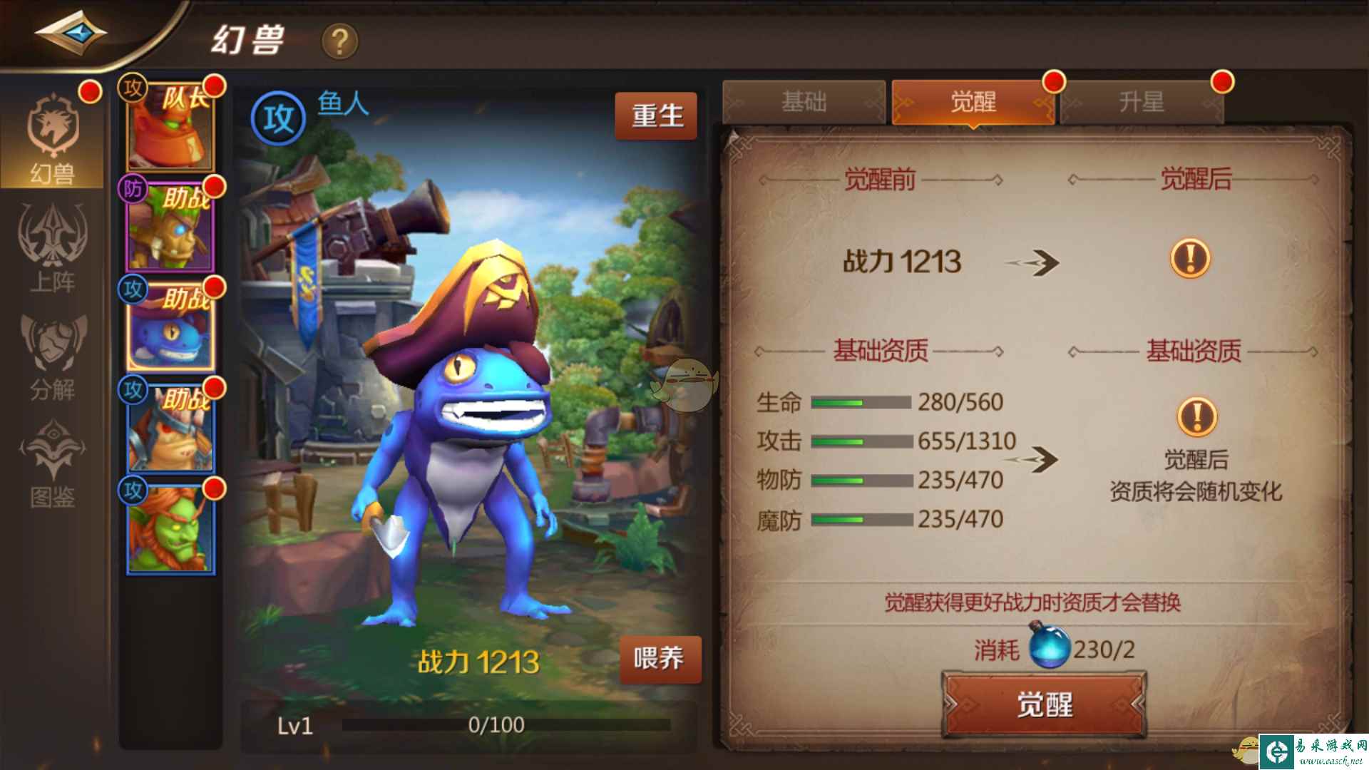 觉醒提升当前基础资质,但不会超过当前资质的上限。进行觉醒操作后,幻兽将会重新随机幻兽资质,但不会重置幻兽星级和等级。也就是当我们幻兽宝宝在升级星级的同时,也要对它进行觉醒,让它的资质趋于满的状态下才是最优秀的。所以要培养一只心仪和强力的幻兽宝宝,还是需要一定的耐心的。