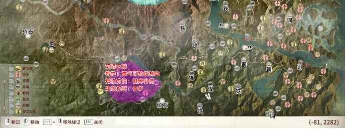 要注意地图左边的三大区域从上到下依次是沙漠、雪山、沼泽都是类似于毒圈的辐射区,穿任何装备进去都会掉相应的炎热、寒冷、瘴气值,装备相应抗性越高掉的越慢。 唯二抵抗方法一个是吃药回复(分别豌豆粥、酒、回血药),另一个是建筑里面的冰鉴、火盆、 焚香,45 级解锁货车和可移动的建筑配件之后就可以在辐射区自由活动了。 注意刷死亡并不会重置抗性值,抗性值消耗后只能通过药物或者去非辐射区缓慢恢复(沙漠可以躲在水里回复)。 |
