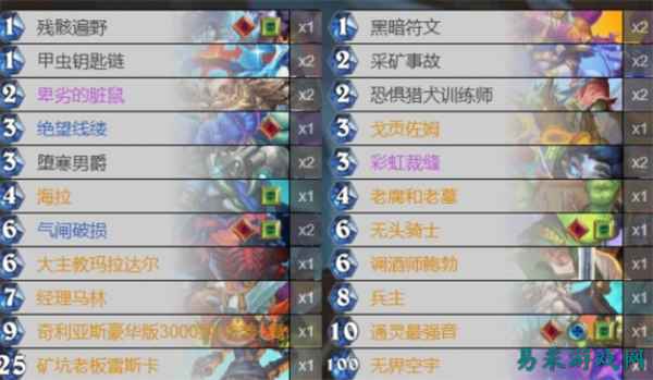 炉石传说中有许多强力的卡组可以让玩家使用,其中彩虹DK就是一组非常强力好用的卡组。但一些玩家尚不知道要如何构筑彩虹DK的卡组,所以这里小编为各位带来了炉石传说彩虹DK卡组构筑与打法思路,希望对你有帮助。 一、卡组介绍: 彩虹DK卡组通过尸体积累、强力的单卡以及控制手段,能够稳定应对各种类型的对局。凭借无头骑士等资源无限增益的卡片,这套卡组适合各种情况,既能稳守场面,也能利用海拉等强卡扭转局势。 二、起手留牌建议: 海拉:后期强大的随从,能够稳定输出并提供额外的资源,适合在中后期进行逆转。 堕寒男爵:为你提供尸体,同时还带有强力的场面控制能力,可以有效地压制对方。 采矿事故:增加资源并加速尸体积累的关键卡片。 甲虫钥匙链:增加你对场面控制的能力,帮助你快速积累尸体。 三、开局思路: 前期:主要目标是通过堆积尸体和稳定场面来迎接后期。使用堕寒男爵、采矿事故等卡片来积累资源,尽量避免丢失过多场面。 中期:依靠不断积累的尸体提升场面控制能力,利用海拉等关键卡牌开始反击对方。 后期:依靠无头骑士等强力卡片积累无限资源,同时通过场面控制扭转局势。 四、卡组代码: AAECAY7xBg78+QWT+wXt/wWDkgaLkgb/lwbHpAa7sQa9sQa6wQa6zgbC6Aaq6gbblwcIh/YElJUG0Z4Gy58GkqAGubEG/7oGoOIGAAED9bMGx6QG97MGx6QG694Gx6QGAAA= 以上就是炉石传说彩虹DK卡组构筑推荐的全部内容,希望能够帮助到你。想查找更多游戏攻略,欢迎持续关注查看。 |