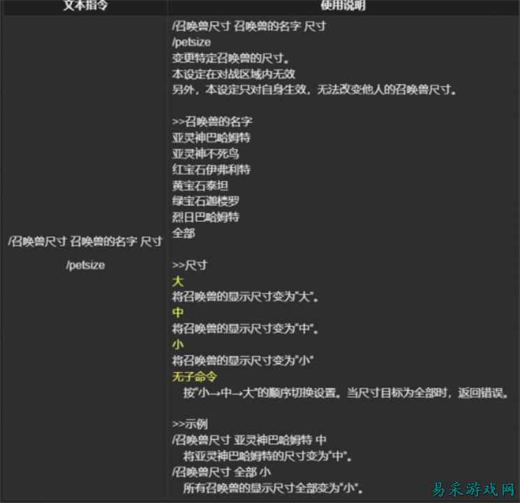 最终幻想14中有些玩家会嫌召唤兽的体型过大影响了视野,但其实召唤兽的尺寸是可以通过一些方法来修改的,这里小编为各位带来了最终幻想14如何改召唤兽尺寸的攻略,希望能够帮助到你,有需要的快来看看吧。 1、全部召唤兽变小 输入指令:/petsize all small 这样会将所有召唤兽的尺寸调整为小型。 2、特定召唤兽变小 输入指令:/petsize [召唤兽名称] small 例如,如果你想让泰坦变小,可以输入:/petsize titan small 这种方式只会改变指定召唤兽的尺寸。 3、可以改变尺寸的召唤兽名称: 亚灵神巴哈姆特 亚灵神不死鸟 红宝石伊弗利特 黄宝石泰坦 绿宝石迦楼罗 烈日巴哈姆特 4、其他事项: 这些尺寸修改指令通常是在召唤兽出场后输入。 如果你希望恢复默认的召唤兽尺寸,可以使用类似/petsize [召唤兽名称] normal的指令。 以上就是最终幻想14如何改召唤兽尺寸的全部内容,希望对你有帮助。 |