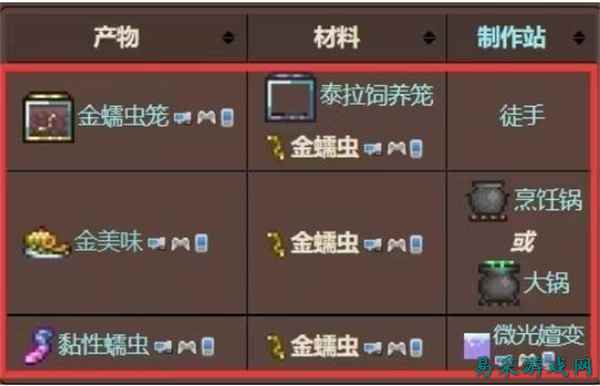 金蠕虫是《泰拉瑞亚》中的一种罕见小动物,主要用于制作特殊道具和作为高级鱼饵。想要获得金蠕虫的玩家可以通过以下几种方式来获取。 1、通过开蠕虫罐头获得 蠕虫罐头是一种可以消耗的摸彩袋类物品,通常可以在地表或地下的宝箱中找到。玩家可以开启这些罐头,约有5%的几率会掉落金蠕虫。 2、使用虫网捕获金蠕虫 玩家还可以使用虫网来捕获金蠕虫,这些金蠕虫可以以10金币的价格售出。金蠕虫是金色着色的普通蠕虫,非常罕见,适合用作鱼饵。它的鱼饵力高达50%,是所有鱼饵中最高的可用值,能够增加大量的钓鱼效率。 除此之外,金蠕虫还可以被有机体分析机或其升级物探测到,是少数能被这些设备识别的实体之一。 3、金蠕虫的用途 制作金蠕虫笼、金美味和粘性蠕虫:金蠕虫是多种重要道具的材料之一,玩家可以使用金蠕虫来制作这些有用的物品。 以上就是泰拉瑞亚金蠕虫如何获取的全部内容,希望对你有帮助。 |