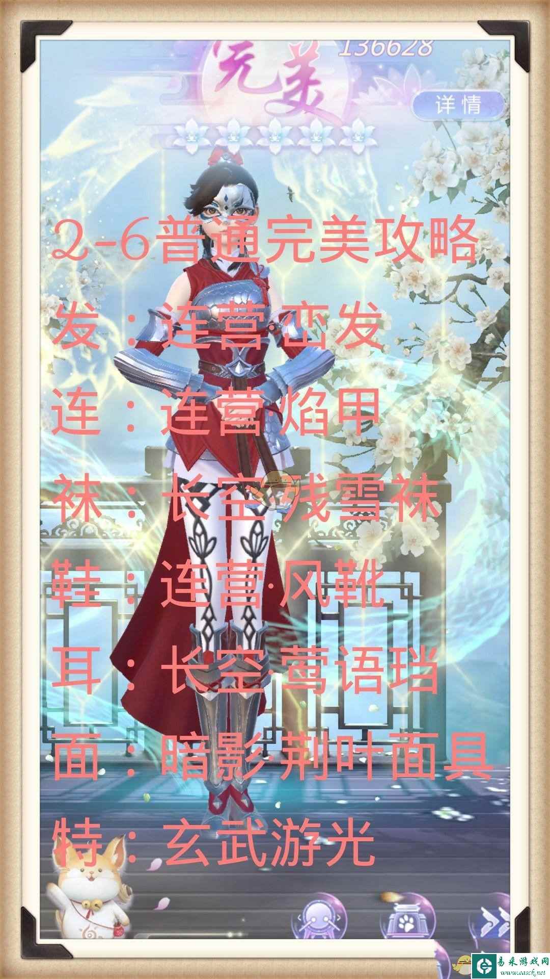 发:连营·峦发 连:连营·焰甲 袜:长空·残雪袜 鞋:连营·风靴 耳:长空·莺语珰 面:暗影·荆叶面具 特:玄武游光 【2-7】 剧情 【2-8】 剧情 【2-9】