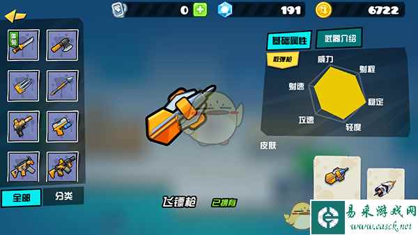 作为有着极高机动性的喵喵侠和在一定程度上老关极其相似,都高速转移性的天生灵巧的角色。有着快速移动能力的喵喵侠做适合就是贴身后可以发出成吨伤害的霰弹枪和飞镖枪了。 这里先介绍霰弹枪,霰弹枪一发五到6发子弹,成扇形发射出去。如果近身就会直接吃到全部子弹的伤害,可以达到秒杀的威力,缺点是较为笨重近身易躲,攻速较慢、后作用力强、换弹时间较长,一击不秒,反而会因为自身攻速在近身上吃亏。喵喵侠可以很好的弥补这些问题,高移速追击近身,更不要说换位技能后突进追击了。 飞镖枪又是怎么回事呢?这里之所以将飞镖枪和霰弹枪放在一起说明,是因为在使用方法和技巧和思路上可以说没有区别的,他们同属于霰弹枪,不过飞镖枪只能打出3发扇形飞镖,在伤害比霰弹枪低上一些,基本上都是打到低血量的残血,秒不了人。但是为此获得就是飞镖枪的攻速、重量、后作用力以及换弹时间都是优化与霰弹枪的,用飞镖枪可以跑得更快,而且攻速极快的情况下,近战也不会太吃亏,但爆发力降低,面对多人时,会明显伤害不足。 简述就是,喜欢追击的选择飞镖枪,而且喜欢更暴力的就选择霰弹枪。 2、阿卡47