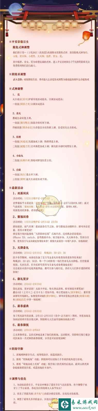 在决战平安京手游中1月31日维护什么呢?这次的维护队荒、首无、桔梗等式神进行调整,同时也开启新春活动,不知道打的小伙伴就看看小编整理的决战平安京1月31日维护内容介绍,感兴趣的就来看看吧。 决战平安京1月31日维护预览