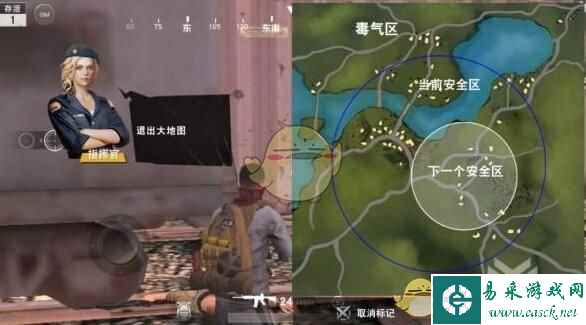 看安全区的方法: 1、在战斗中,为了保证每场战斗可以按控制在一定时间内结束,战斗内设计了安全区/毒气区。 2、安全区会随游戏时间不断缩小,在安全区外的玩家会不断的受到伤害 3、蓝色范围为毒气区,白色区域为安全区,玩家需要不断的移动,到达安全区域从而获得比赛的胜利。 |