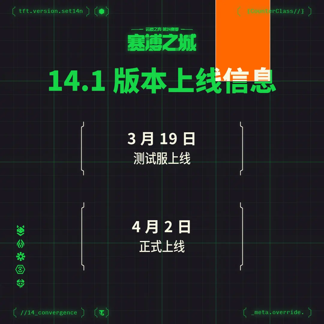 在云顶之弈游戏中,s13版本已经临近尾声,s14赛季的赛博之城主题快要和大家见面了,游戏将会在3月19日开始测试,很多玩家还不知道s14的国测服什么时候更新,下面小编就为大家带来云顶之弈s14国测服更新时间,感兴趣的玩家可以来了解一下。 云顶之弈s14国测服上线时间 答:3月19日或3月21日上线 1.云顶之弈s14测试将会在3月19日开始,首先登录美测服。