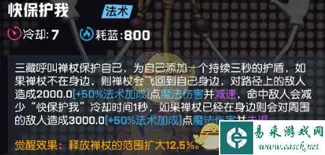 三藏的保护技能,当禅杖在你身边的时候,若是敌人已经近身对你进行输出,这时候在使用,可以吧敌人弹开,并为自己添加一个护盾。减速效果不大说实话。 3技能: