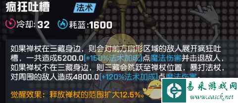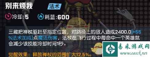 三藏的主要输出技能,这里输出并不是靠移动法杖来造成输出,而是把法杖移动到一个合理的位置,进行普通攻击输出。 12级觉醒后,攻击范围和法杖移动范围都获得提升。 2技能: