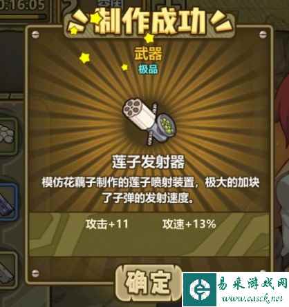 【装备名称】莲子发射器 【装备类型】武器 【装备属性】攻击+10-14 攻速+10%-14% 【装备配方】 莲子+白铁矿+铁矿+铁矿 莲子+白铁矿+白铁矿+铁矿 莲子+白铁矿+白铁矿+白铁矿 |