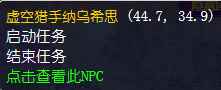 详细答案: 任务名称:最好的防御 任务流程:虚空猎手纳乌希思要你转至风暴尖塔以北的铸魔基地:炼狱,消灭12名天罚使者。 天罚使者:(36.0,18.2),(36.7,17.7),(37.3,20.1),(38.9,18.1),(37.7,21.6),(38.4,20.0),(39.5,23.4),(40.0,25.0),(40.7,24.5),(41.5,23.4),(42.6,23.3),(42.3,19.9),(40.6,20.0) 相关地点:此任务完整发生于虚空风暴 位置坐标:开始、结束任务(虚空猎手纳乌希思:44.7,34.9)