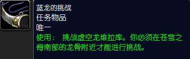 任务描述: 虚空龙的性情与它们的黑龙同宗一样凶暴而狂躁,但也有一些截然不同的地方。虚空龙的孵化期和成长期十分短暂,身上涌动着奇特的能量。这种能量流是在德拉诺世界毁灭的时候产生的,从而导致了虚空龙这一族群的诞生。 我还需要了解更多的细节,我相信这种能量可以为蓝龙所用。如果我能取代这些虚空龙的领袖维拉库,充分展示我的统御力,我们就能令其它虚空龙屈服。 奖励: 你可以从这些奖励品中选择一件: