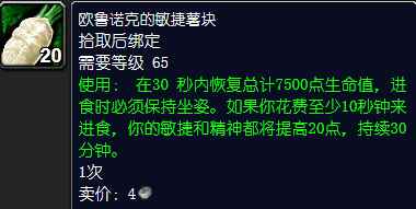 详细答案: 物品名称:欧鲁诺克的敏捷薯块(消耗品)