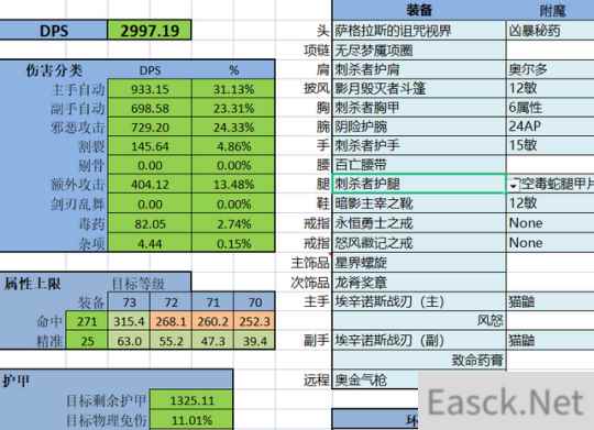 这个秒伤已经非常了不起了,要知道兽王猎在P3阶段的最高预期秒伤也就2800点左右,小黄人能和版本之子相提并论已经算逆袭了。更何况盗贼玩家在P3还有一对真正的神级武器可以再次大幅提升DPS,那就是埃辛洛斯战刃。