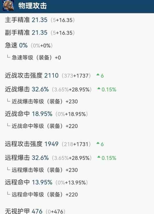 这套装备的最终无BUFF数据如图,首先是21.35点精准、18.95%点命中,基本只差一点点就可以顶满精准和命中了,这对于盗贼来说非常重要,因为命中率不仅关系到直接伤害还关系到盗贼的回能,权重非常高。 近战攻击强度达到了2116点,暴击率为32.6%,还有476点护甲,这个属性已经非常华丽了,我们再来看看它们的跑分表现: