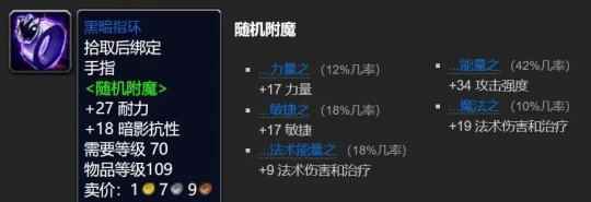 这里小编向大家推荐2件极品蓝装,固定18暗抗27耐力还有随机附魔,戒指可以同时戴俩,非常适合DPS玩家使用。