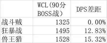 3、替换元素位置的主要是增强,然后是奶萨 4、无论如何组合,用法师代替鸟德对团队DPS正收益,用术士代替鸟德在绝大多数情况下对团队DPS是正收益 5、P3之后的团队优化配置展望是:鸟德0-1个 元素0-1个 增强1-2个 奶萨 2-4个 PS 为何不计算鸟德精灵火物理命中+3%收益? 1、猎人、武器战、惩戒骑命中溢出,T仇恨溢出,收益主要是KBZ、盗贼的 2、即使组一个2-3队KBZ的文艺复兴队伍,出强化精灵火的奶德可以代替鸟德 在团队配置中,战斗贼的竞争对手主要是兽王猎和狂暴战。 由此从自身DPS和强化破甲收益两个维度,观察、模拟、展望战斗贼DPS。 结论如下: 1、随着P3装备的提升,战斗贼与狂暴战、兽王猎DPS差距缩小 2、战斗贼依然被狂暴战、兽王猎压制,不能作为核心输出 3、战斗贼有可能挤占掉一个猎人位置,实现团队DPS正收益 3、战斗贼可能挤掉兽王猎,然而狂暴战可以挤掉战斗贼 4、有趣的是,战斗贼与狂暴战、兽王猎并非完全竞争关系,团队物理DPS越多,战斗贼出场的概率越高 3队以上 物理输出阵容,战斗贼挤掉狂暴战可能是团队正收益,然而3队以上近战能打过均衡或者纯法刀吗?只有实战能告诉答案了 变化三:战斗贼难回归 一、P2现状 引用自WCL实战数据,制作了盗贼、狂暴战、猎人的DPS对比表格如下: