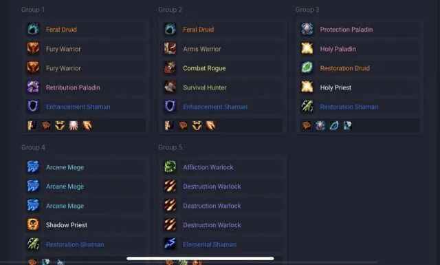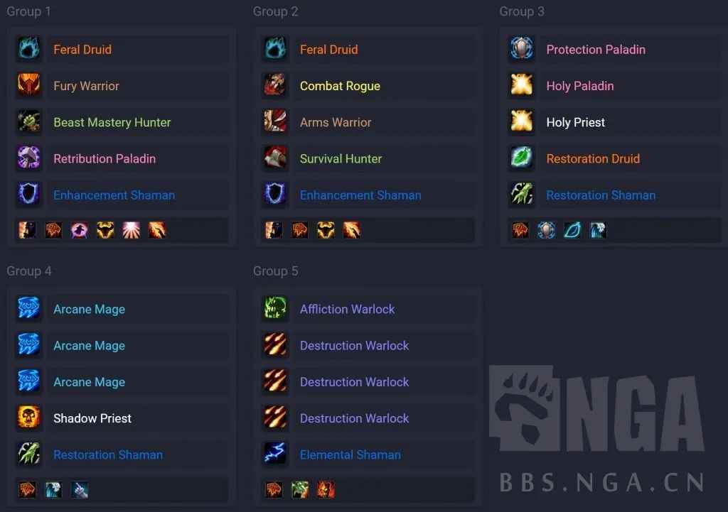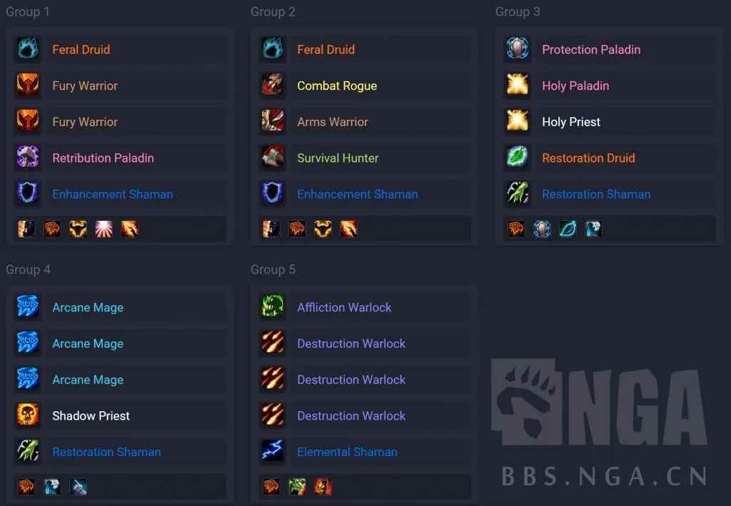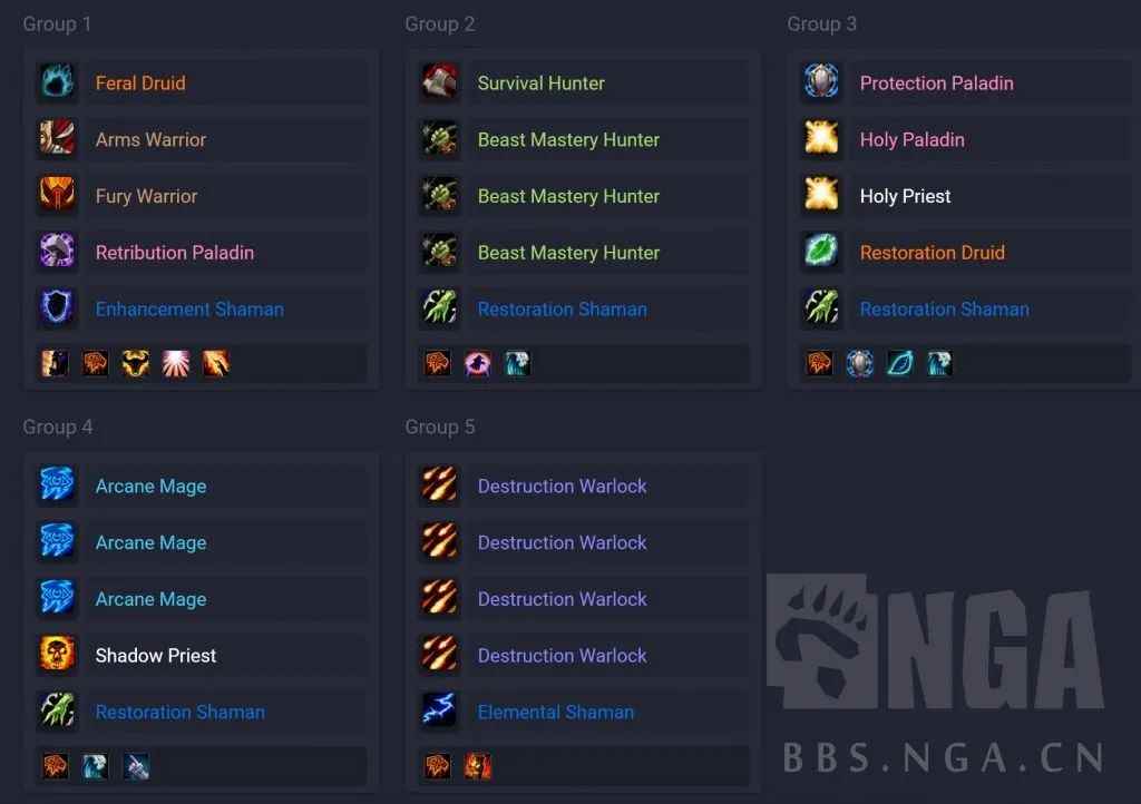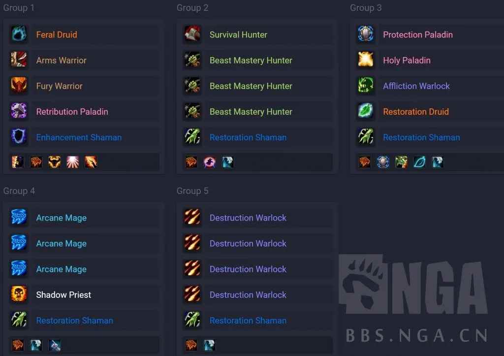 2、常规6奶,法术队元素换成奶萨,神牧换术士(5奶则猎人队换增强)