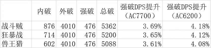 粗略结论,BOSS战斗中,强化破甲能提升3.8%物理伤害 同时粗略假设强破循环下战斗贼丢失割裂5%伤害 由此强破修正估算如下: