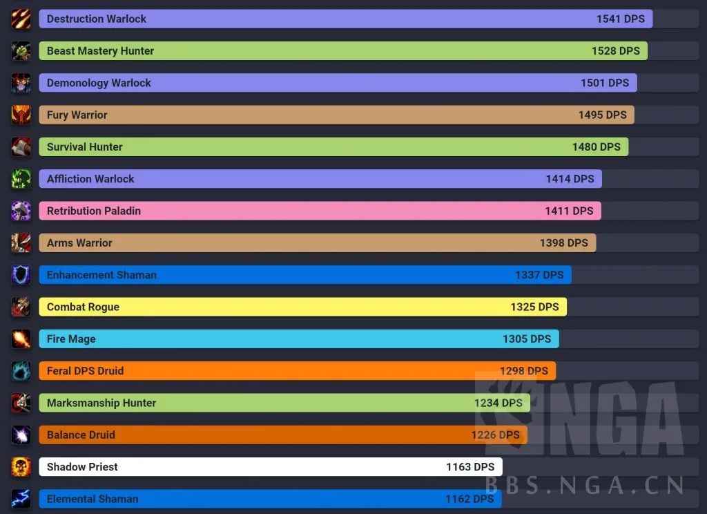 变化二:鸟德元素团队地位下降 p3随着装备提升后 以团队dps提升为目的 1.元素被增强奶萨代替 2.鸟德被法师术士代替 判断一个DPS的团队地位,最重要的是看其能不能提供更高的团队DPS,既包括自身输出,也包括其团队增益效果 1、比较自身DPS差异 节选自P2WCL,BOSS战斗各职业自身DPS数据(90分位)