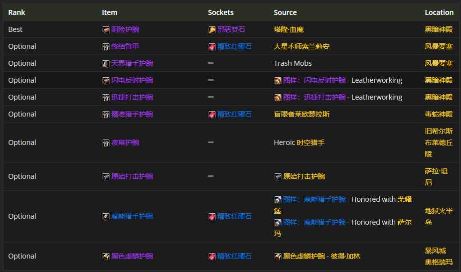 手腕装备首选阴险护腕,附魔推荐 附魔护腕 - 突袭