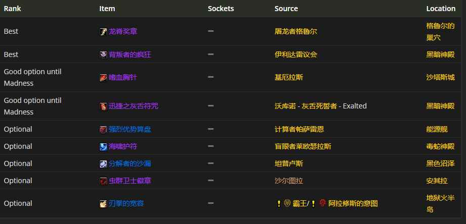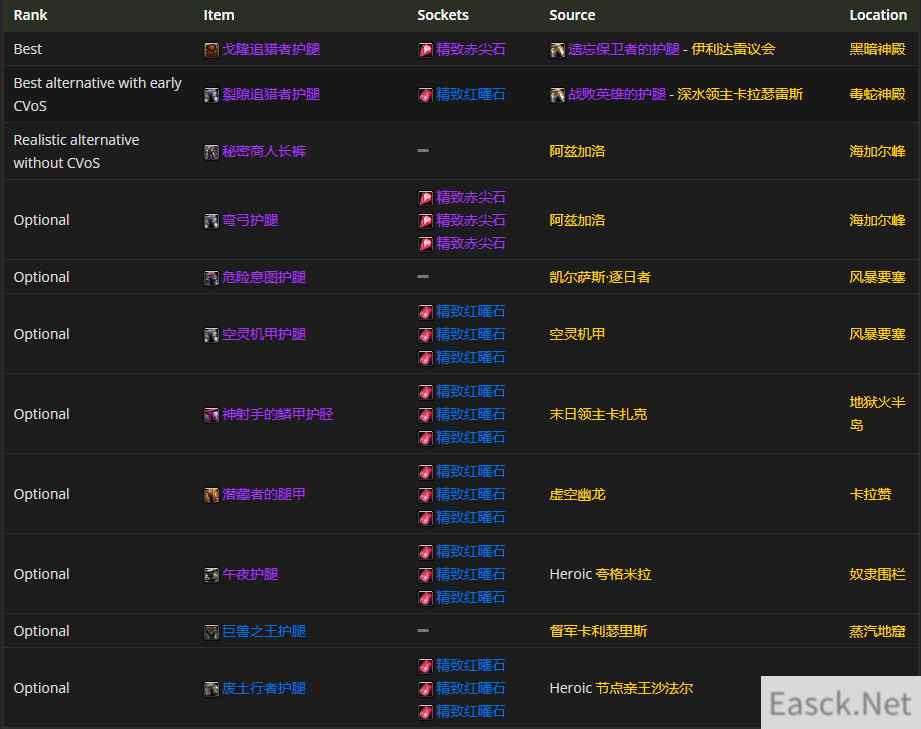 腿部装备首选戈隆追猎者护腿,附魔推荐 虚空毒蛇腿甲片