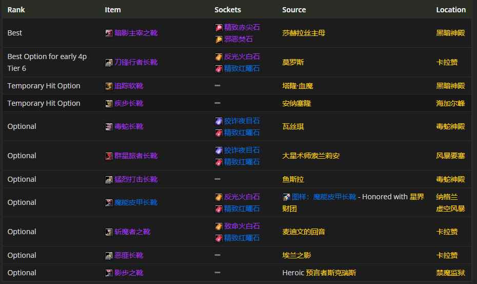 脚装备首选暗影主宰之靴,附魔推荐 附魔长靴 - 灵巧