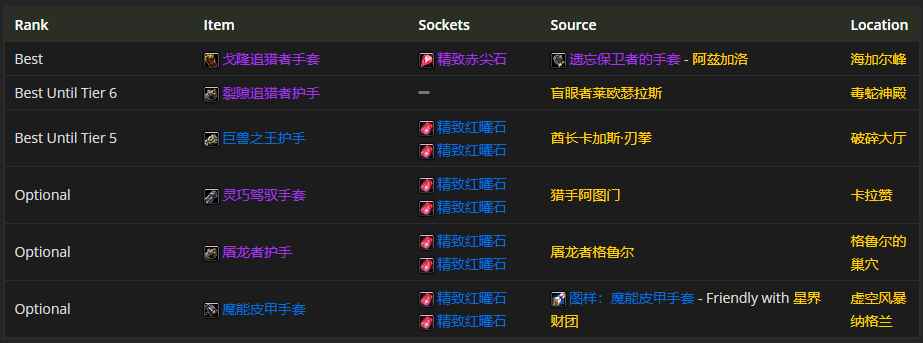手部装备首选戈隆追猎者手套,附魔推荐附魔手套 - 超强敏捷