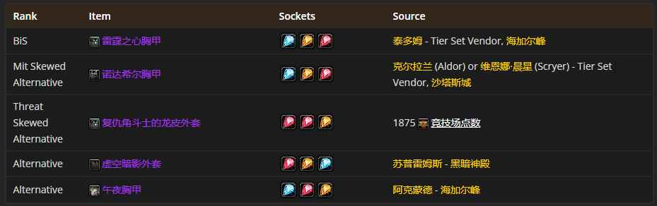 胸部装备首选雷霆之心胸甲,附魔推荐 附魔胸甲 - 杰出属性