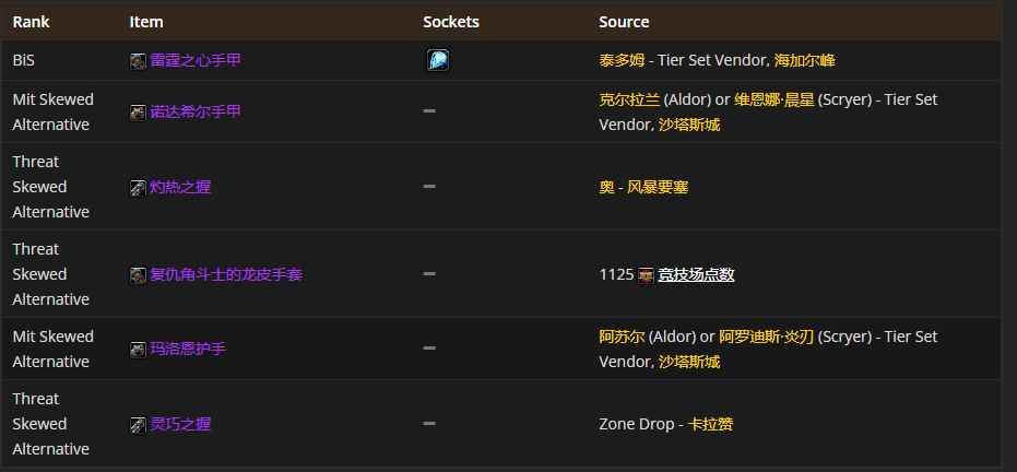 手部装备首选雷霆之心手甲,附魔推荐附魔手套 - 威胁