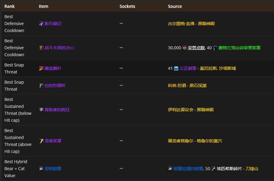 魔兽世界tbcP4祖阿曼快上线了,在祖阿曼上线之后很多职业的BIS配装都要改变,比如熊德,那么魔兽世界tbcP4熊德怎么配装?下面就给大家带来魔兽世界tbcP4熊德BIS配装。 魔兽世界14天游戏时间免费领取地址:点击查看 魔兽世界tbcP4熊德BIS配装