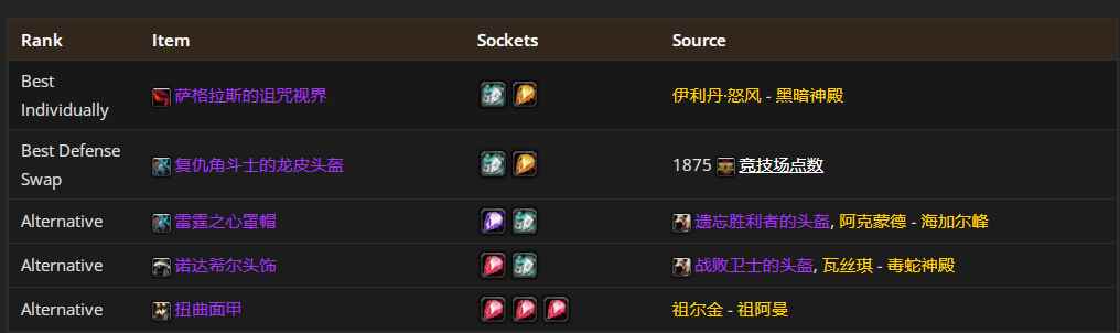 头部装备首选萨拉格斯的诅咒视界,附魔推荐凶暴雕文