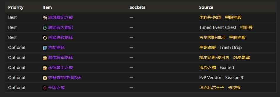 戒指首选怒风徽记之戒、原始怒火徽记、凶猛进攻指环