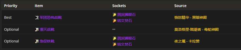 腿部装备首选神圣惩戒护腿,附魔推荐 虚空毒蛇腿甲片