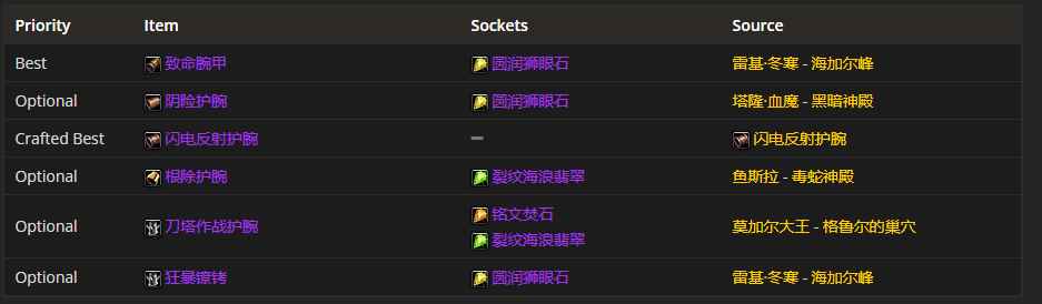 手腕装备首选致命腕甲,附魔推荐 附魔护腕 - 强壮