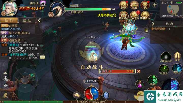 【试练塔】 试练塔可以获得坐骑升级道具,第一次通关试练塔某层,可以获得大量经验奖励,要想快速升级到36级,试练塔应该至少打到10层以上。