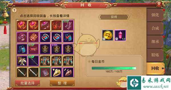 4. 【回收】 细心的玩家可以发现我们回收道具也会获得大量金币,如果把每一个不需要的道具都利用起来的话,回收所得的金币可能是你高人一等的关键!