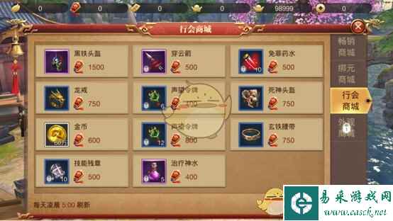 藏宝阁 行会成员可在藏宝阁中用行会贡献购买道具