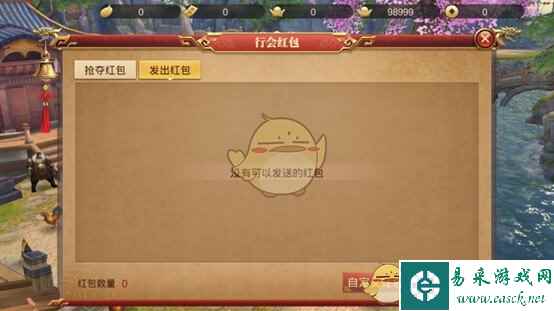 行会红包 可查当前可抢的红包记录,也可以自定义红包在行会内发送红包