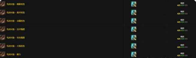 制皮专业制作的毛皮衬垫是护腕附魔,毛皮衬垫分为几种不同的属性,有5种抗性的毛皮衬垫,另外还有提高76点法伤、提高130点攻强和提高102点耐力的毛皮衬垫附魔,该怎么选择,大家自己做主。