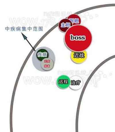 要求:在2号BOSS“亡语者女士”的战斗中,保持NPC达纳凡的存活。 要点:达纳凡攻击和HP都很弱,所以DPS们要注意别手抖把他打死了。刚出来的时候坦克接手后拉到楼梯处后场角落里,然后奶德/树德无限缠绕即可。 任务难度:低。 亡语者女士攻略及掉落 城门区周常二:攻占壁垒: 在击杀了2号BOSS并乘上电梯之后,杀掉电梯门口遭遇战敌人之后会出现给任务的NPC 要求:击杀腐爛的冰霜巨人 当你清理掉到飞艇路上的小怪,路的尽头就能看到它缓慢巡逻中: BOSS的特技: 范围击飞并造成伤害:单纯打飞起来,不会击退,但是请小心摔伤。伤害属性为冰霜,冰抗有效(骑士开冰抗光环)。 上疾病:中了疾病的玩家在15秒后直接被杀死。你能通过将疾病传染给别人来避免这个击杀。传染的方式是疾病生效的时候发生一个小范围的爆炸,所有在周围的玩家都会被传染,并承受8000点伤害。 将疾病传染出去的人在一段时间内无法再承接疾病。所以如果疾病一次将所有人都传染了,那结果就是下次生效无法传染给新的人,然后灭团。 本次战斗治疗压力相对较大,可以考虑双修职业临时转换成治疗进行战斗。 常规打法: BOSS是个木桩,唯一要注意的就是疾病的传染,如图所示: 坦克:2个坦克站在一起拉BOSS,最好找一个背朝墙壁的地方。 中疾病的人到指定的位置站着,然后没有DEBUFF的人过去承接疾病即可。将疾病传染出去的人可以回到自己的位置。
