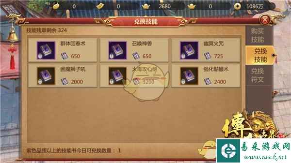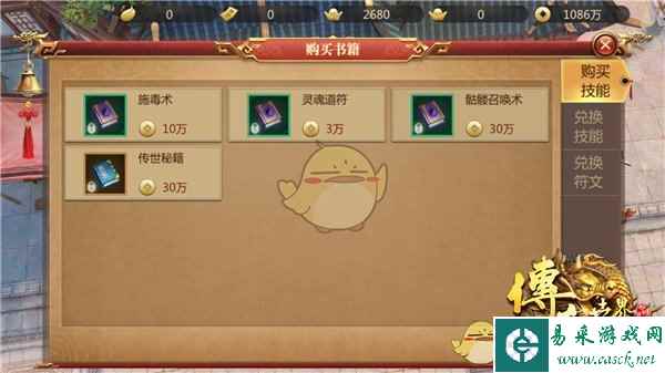 在游戏中技能入手总共可分为两大途径,其一是在书店掌柜处购买,这里购买分为两种付款方式,其一是金币,金币只能购买品质较低的技能书,在初期可以给大伙提供很大的帮助。其二是技能残章,技能残章可购买紫色和橙色品质的技能书,品质越高的技能书购买所需的技能残章就越多。