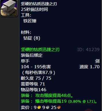 魔兽世界14天游戏时间免费领取地址:点击查看 魔兽世界坚硬的钴质迅捷之刃怎么获得很多玩家不知道,wlk的很多锻造图纸都很重要,可以获得很好的经济收益,坚硬的钴质迅捷之刃属性不错。下面就来看看wow怀旧服坚硬的钴质迅捷之刃图纸配方去哪学。 魔兽世界坚硬的钴质迅捷之刃怎么获得