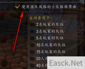 2、然后在打开的窗口中,找到“在使用团队风格的小队框体界面”打勾,如下图所示。