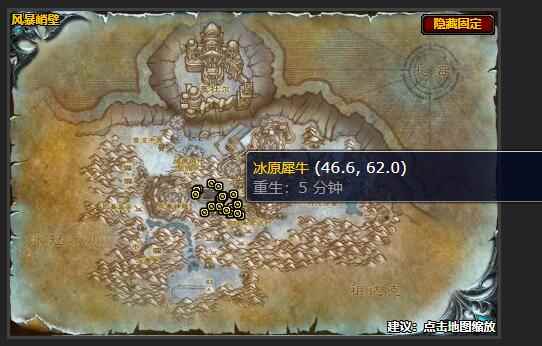 任务目标1:收集8块新鲜的冰犀牛肉 来源:冰原犀牛 位置图: