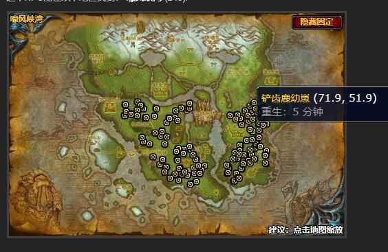 任务目标1:带回一张天然铲齿鹿皮 来源:铲齿鹿幼崽 位置图: