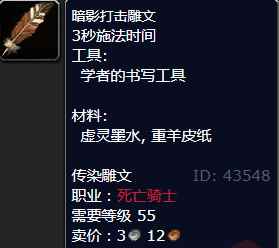 魔兽世界暗影打击雕文怎么获得很多玩家不知道,wlk的很多铭文很重要,可以获得很好的属性收益,是每个玩家必备的。下面就来看看wow怀旧服暗影打击雕文获取方法。 魔兽世界14天游戏时间免费领取地址:点击查看 魔兽世界暗影打击雕文怎么获得