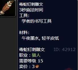 魔兽世界毒蛇钉刺雕文怎么获得很多玩家不知道,wlk的很多铭文很重要,可以获得很好的属性收益,是每个玩家必备的。下面就来看看wow怀旧服毒蛇钉刺雕文获取方法。 魔兽世界14天游戏时间免费领取地址:点击查看 魔兽世界毒蛇钉刺雕文怎么获得